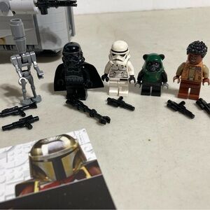 The space ship is complete with all pieces checked according to the manual. Pictures show the piece layout. Could not include the same Minifigures so substituted. Ewok replaced Yoda, the droid has no face & the other 3 star fighters r somewhat different. 5 Minifigures r included with the set with the instruction manual. No box. Ready for the challenge?