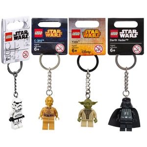 🖤 Lego Star Wars Keychain Ring Lot of 4 Stormtrooper, C-3PO, Yoda, Darth Vader