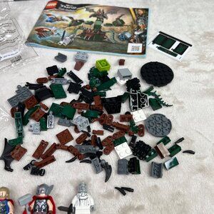 Lego Thor Love and Thunder Attack on New Asgard set no. 76207. Box is torn open, set seems complete or nearly complete but I did not count pieces or finish assembling so assume there are pieces missing. Everything shown is included.