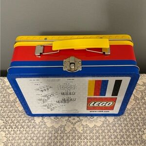Lego tin lunchbox with original brick patent design. Lego 5006017. Approximately 7.5x3x5.5. Never used.