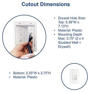 Using this Legrand flat panel recessed connection kit, you can effortlessly connect your television to the cable and power. A white decorator plate completes the look of in-wall storage that organizes cables and wires to keep them from tangling on the floor. This flat panel recessed connection kit from Legrand provides easy access to the rear of your television.