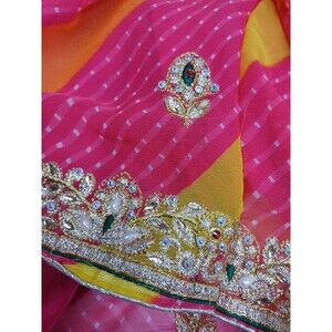 Lehenga Indian Pakistani Wedding Maxi Skirt Womens Pink Gold Polkodot XS