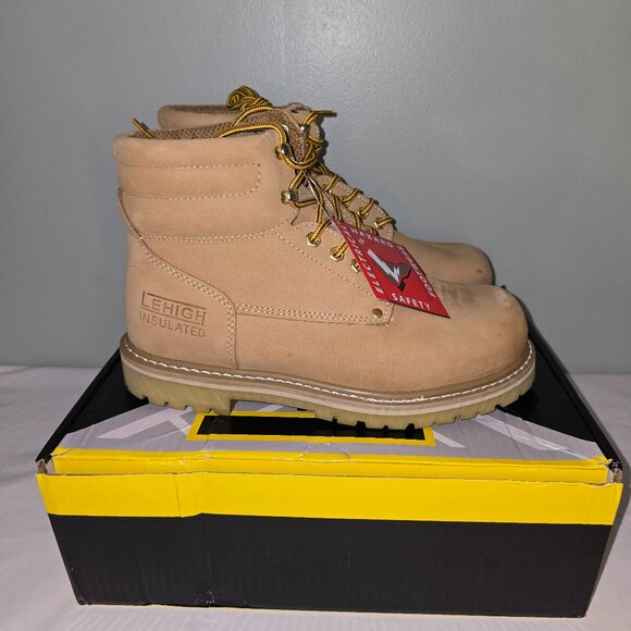 Lehigh Safety Steel Toe Work Boots 5030; Men's 9.5D, Tan, New in Box