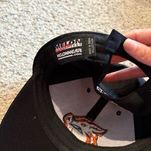 Stylish black cap featuring an orange embroidered logo. Perfect for casual wear.