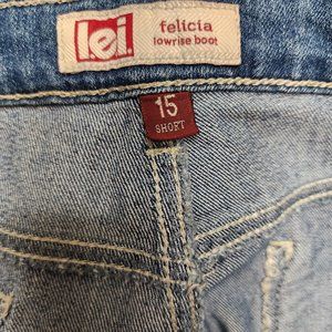 Lei Felicia Lowrise Bootcut Blue Jeans Size 15 Short Lightly Distressed y2k