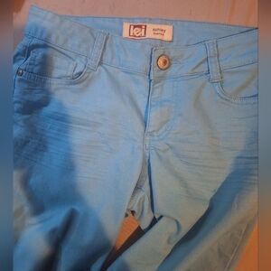 Stylish light blue jeans perfect for any casual outing. Comfortable fit and trendy design make these a wardrobe essential. fits a size 6-8 in woman's.