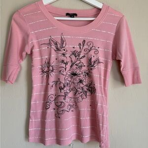 L.e.i. Y2K Graphic Short Sleeve Bird True Cotton Baby Tee Pink Women’s Small