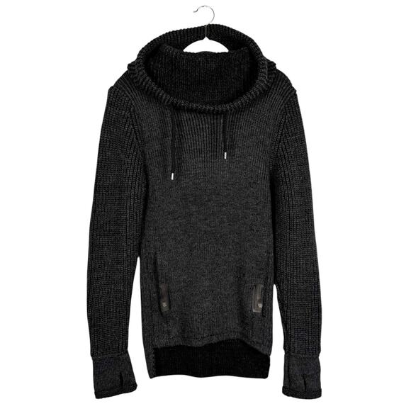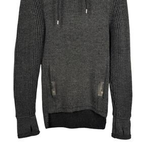 Leif Nelson Gray Streetwear Knit Shawl Drawstring Neck Fitted Sweater Sz Small