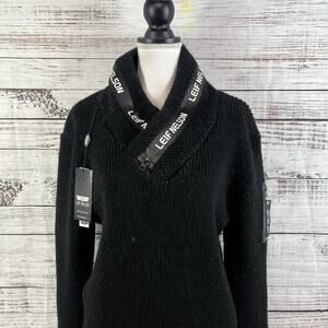 Leif Nelson Mens Pullover Sweater size Large Black Zipper Pockets Name Logo