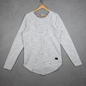 Leif Nelson Sweatshirt Mens Size Large Gray Heathered High Low Fringe Hem Y2K