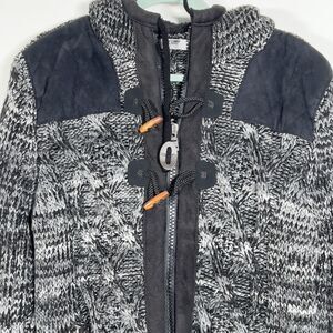 Leif Nelson Zip Up Hooded Slim Fit Cardigan Sweater Mens Sz L Marled Black