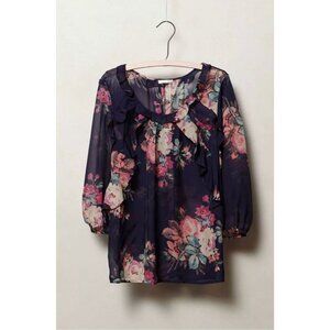 Leifsdottir Anthropologie Cotati Silk Dramatic Floral Print Sheer Blouse