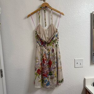 Leifsdottir Anthropologie Cream Colorful Floral 100% Silk Mini Dress Size 4