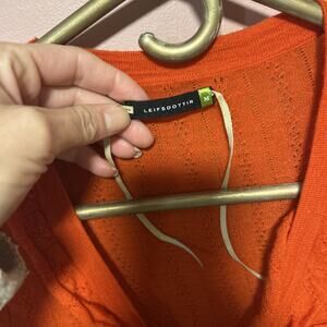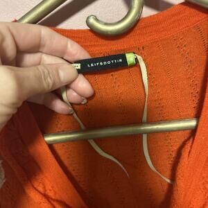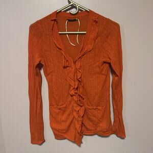 Leifsdottir Anthropologie Red Orange Cardigan Small Ruffled Cashmere Wool