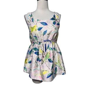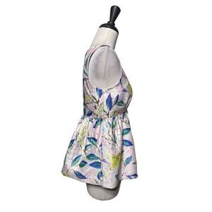 Leifsdottir Anthropologie Sleeveless Metallic Peplum Blouse with Birds Size 2