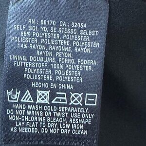 * Material (outter): 86% polyester,14% Rayon (lining) 100% polyester