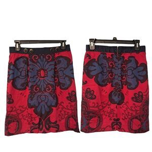 Leifsdottir Floral Butterfly Print Midi Straight Skirt Anthropologie Size 2 Pink/ Blue Pattern