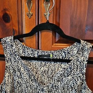 Leifsdottir Navy and Cream Sleeveless V-Neck Blouse, NWOT