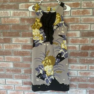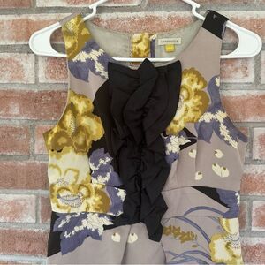 Women’s size 2 Leifsdottir x Anthropologie Quarry Lake dress. Silk blend, sheath fit, has a ruffle at the front. Cut out back with buttons at the top. Taupe with floral design. Excellent condition!
