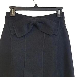 Leifsdottir Women's Black Wool Tight Knit Pull On Skirt w Front Bow EUC sz XS