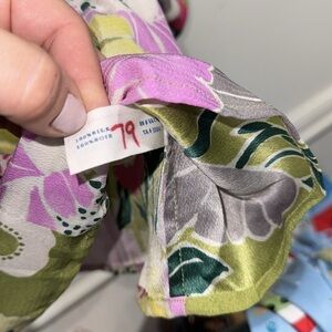 Leifsdottir silk blouse floral bright cinch small Anthropologie