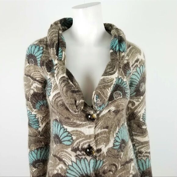 Leifsdottir Anthropologie Cardigan Floral Sweater Size XS Blue & Tan Wool Mohair