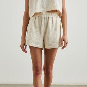 Made with super soft, breezy double gauze cotton in an easy pullover silhouette, these shorts are perfect for any occasion. These high rise, lined, classic shorts feature a smocked elastic waistband and a relaxed fit.