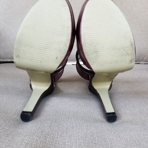 Super cute, fun platform sandals. Only worn a couple of times; in great condition! Heel height with platform is approx. 5.5". Really comfy and heel wears similar to a 3-3.5" heel. Strap closure adjustable for comfort.