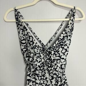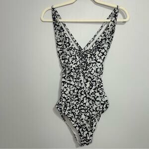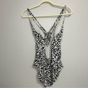 Leilani Black White Pattern Lace Up Front One Piece Swimsuit Women’s Size 8