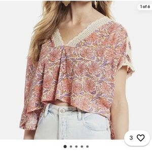 boho Bohemian anthro free people hippie festival crop spring summer floral patterned girly feminine floral crochet cotton natural fiber eco friendly casual every day wear