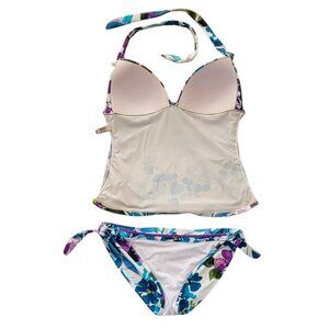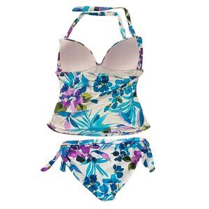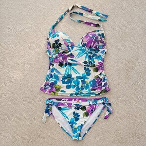 Leilani Floral 2 Piece Tankini Swim Suit Halter Top with Bikini Bottoms Sz 14