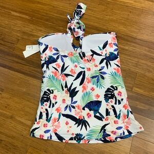 Keywords: Leilani, tankini top, swimsuit, floral, halter neck, ruched, white, pink, green, size 16, swimwear, beach, pool, vacation, new with tags