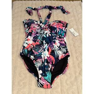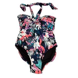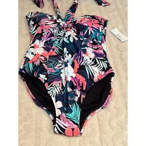 Leilani Lux Bandini One Piece Bandeau Black Floral NWT Size 14