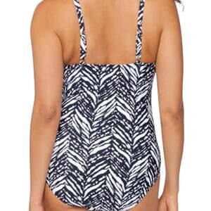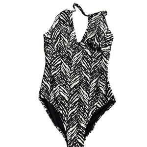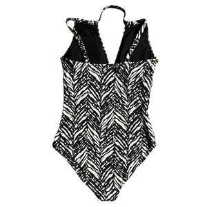 Leilani Poolside Keyhole One-Piece Swimsuit Black and White Zebra Print Size 6