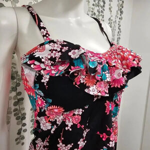 Leilani Swimsuit Size 12 Black Pink Floral tankini