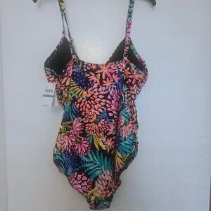 Leilani black and floral one-piece swimsuit NWT Size 16