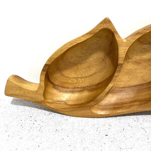 Leilani genuine Monkey Pod Wood hand crafted snack tray 4 section wooden decor