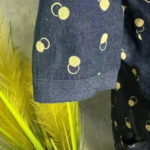 Leilian Blue Denim Skirt Suit Short Sleeve Circle Design Made in Japan Size 9