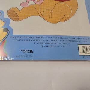 The Leisure Arts "Pooh 'Best Friends' (Pooh & Piglet)" Cross Stitch Kit (model 34007) is a delightful hand embroidery kit featuring a Winnie the Pooh theme. This kit includes a design chart, instructions, needle, fabric/cloth, and thread/floss for creating a charming counted cross stitch piece. Made in the United States, this kit is perfect for crafters looking to add a touch of whimsy to their home decor with a beloved Pooh character and Piglet.