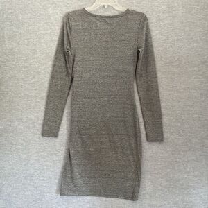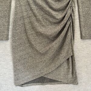 Leith Asymmetric Ruched Dress Womens Small Gray Minimalist Capsule Wardrobe Fitted Crew