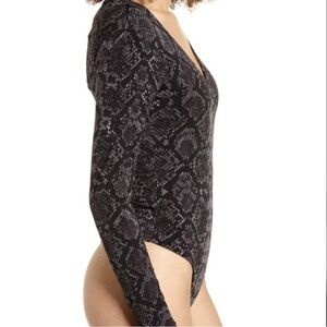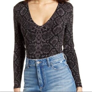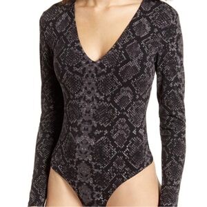 Leith Black Gray Snake Print Long Sleeve Bodysuit Medium