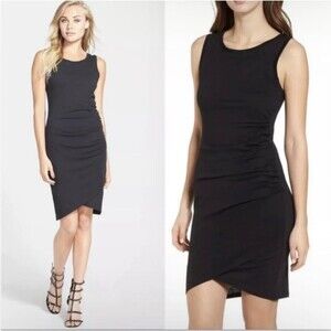 Leith Black Knit Ruched Body-Con Tank Dress Size Medium