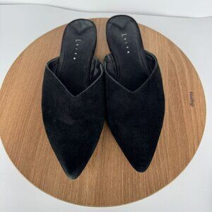 Leith Black Pointed-Toe Slip-On Suede Leather Mules Flats Shoes Womens Size 6