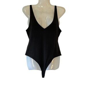 Leith Black Thong Bodysuit V-Neck Front and Back Sleeveless Pull-on Size Medium