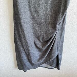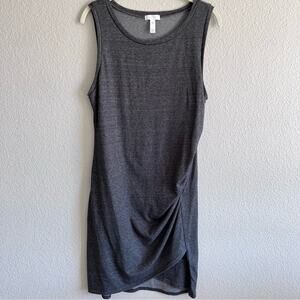 Gentle ruching at one side adds soft texture to a slinky tulip-hem sleeveless tank dress.