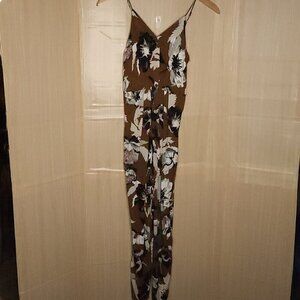 Leith Brown Floral Adjustable Strap Jumpsuit Small