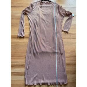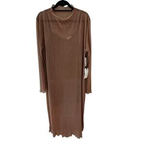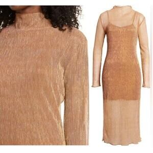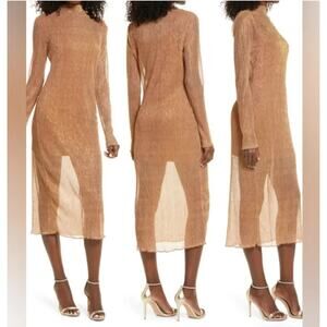 Leith Champagne Gold Long Sleeve Sheer Midi Dress Size 1X NWT Party Holiday NYE