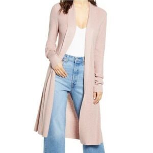 Leith Cozy Shawl Collar Long Cardigan Sweater Soft Pink Adobe Women Medium
