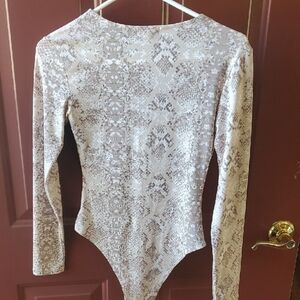 Leith Cream and Brown Patterned Snakeskin Bodysuit