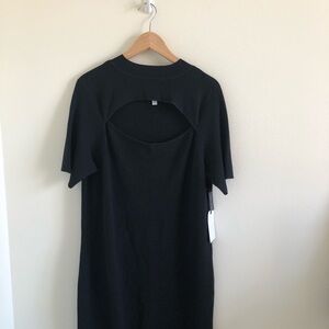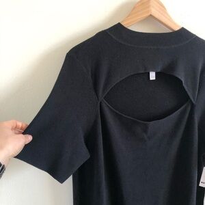 Leith Cutout Front Mock Neck Body Con Black Knit Sweater Dress 3X
